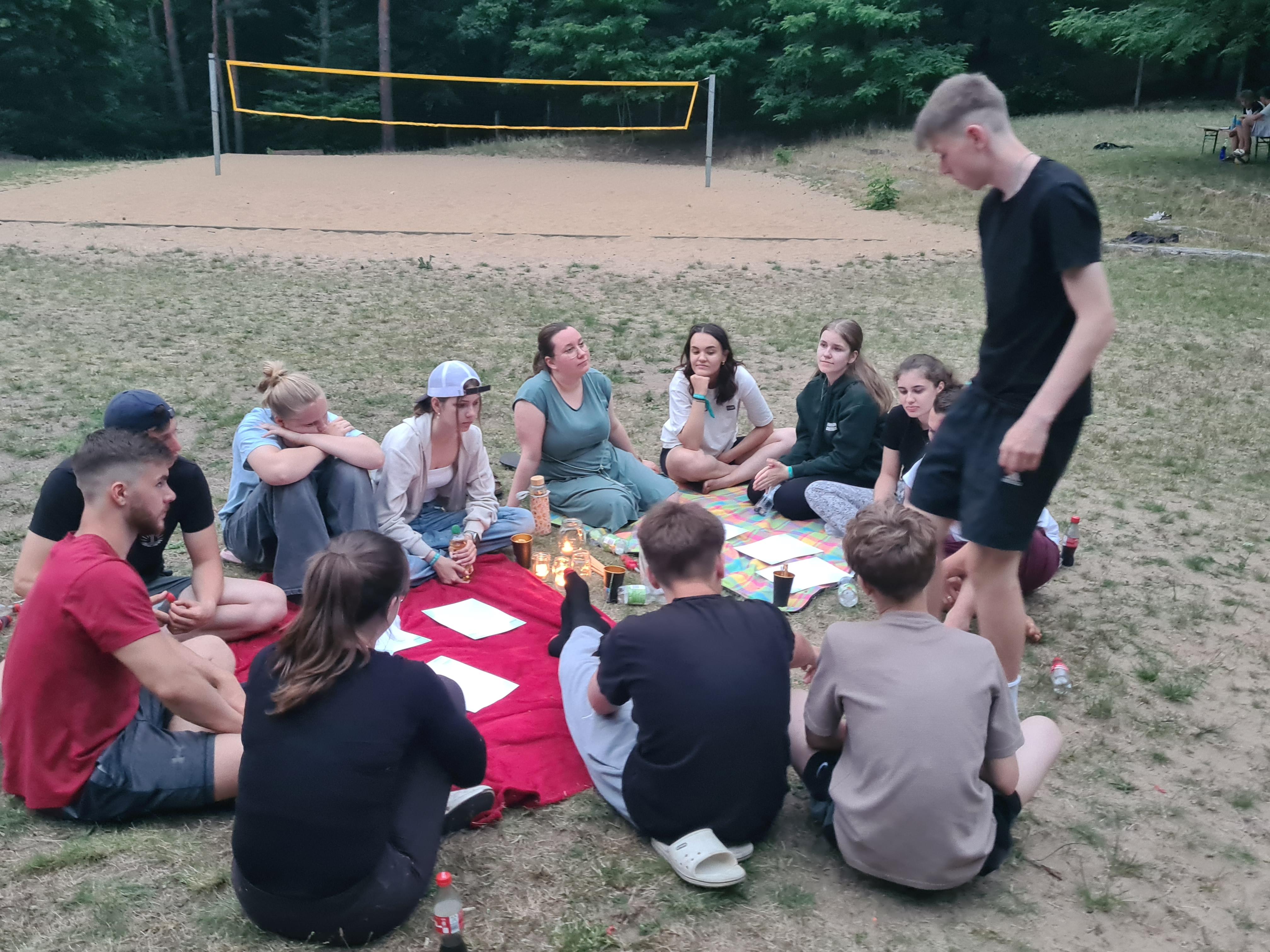 Nach dem Abendbrot waren auf einer Wiese für den Candlelight-Talk kleine Inseln aus Picknickdecken vorbereitet, ausgestattet mit Kerzen und Knabbereien. Über Lautsprecher hörten wir erst den Poetry-Slam „Warum“. In kleinen Gruppen diskutierten die Jugendlichen, warum und wann man sich aktiv für Jesus entscheidet. Man könnte leicht sagen, dass die Konfirmation einen Punkt darstellt, an dem man sich für Jesus entscheidet. Viele können aber erst später erfassen, was das wirklich bedeutet. Denn man entscheidet sich jeden Tag neu für Jesus.