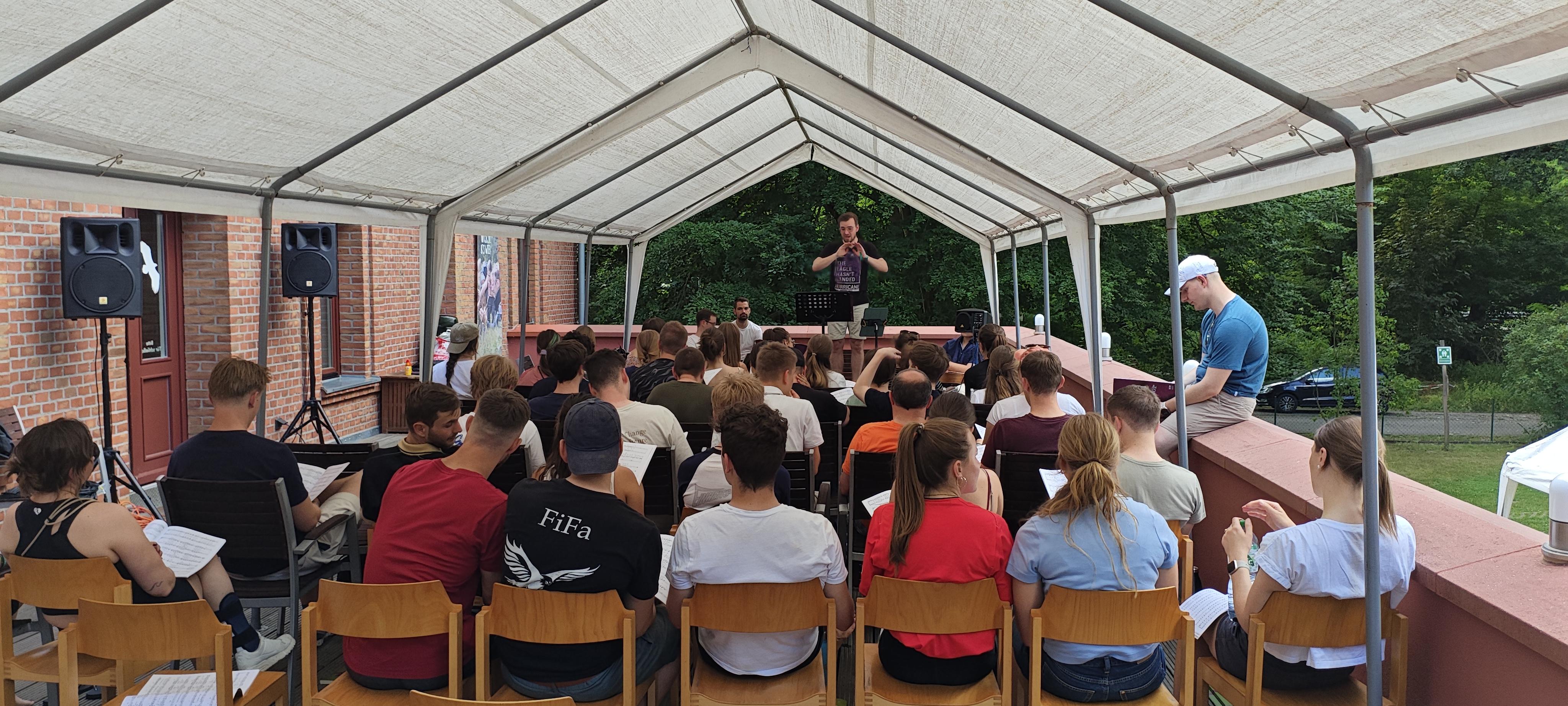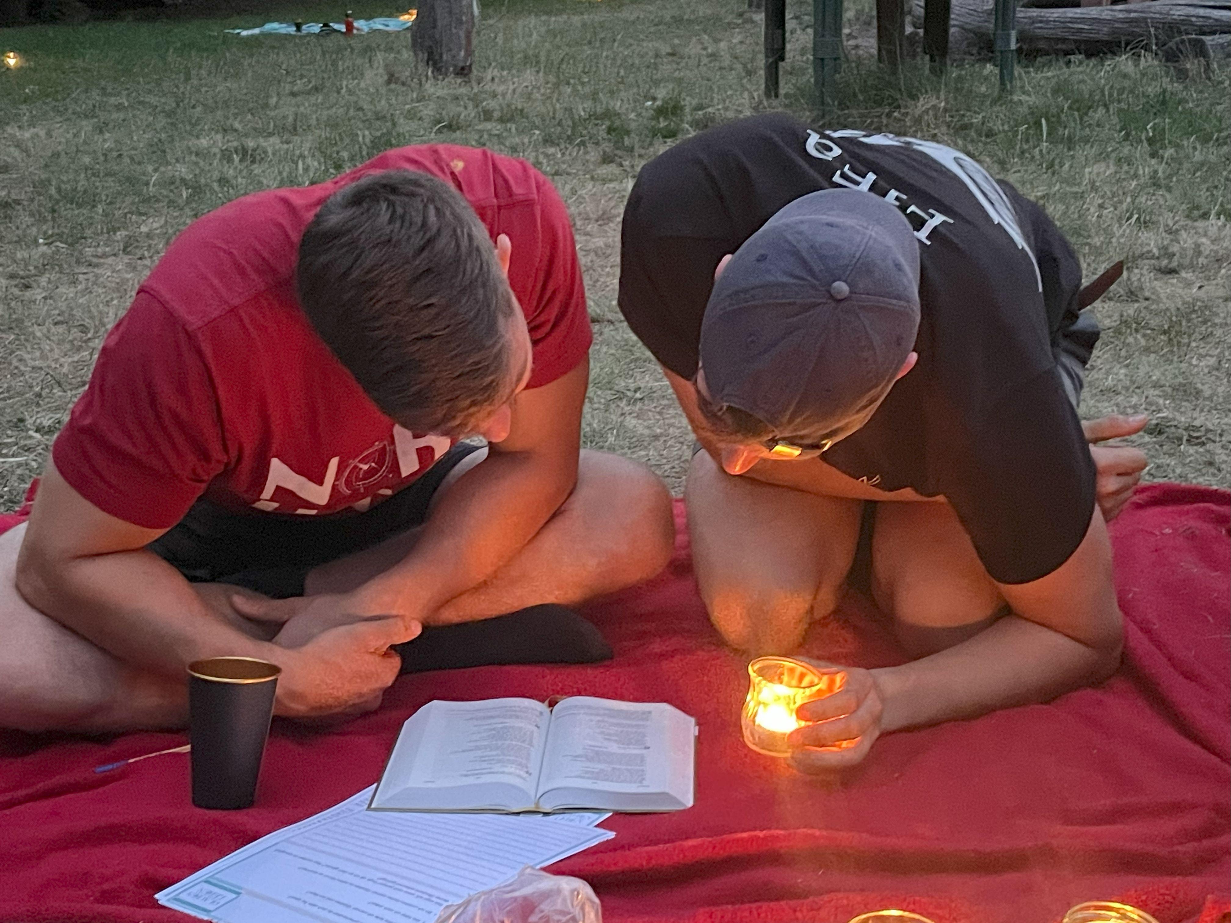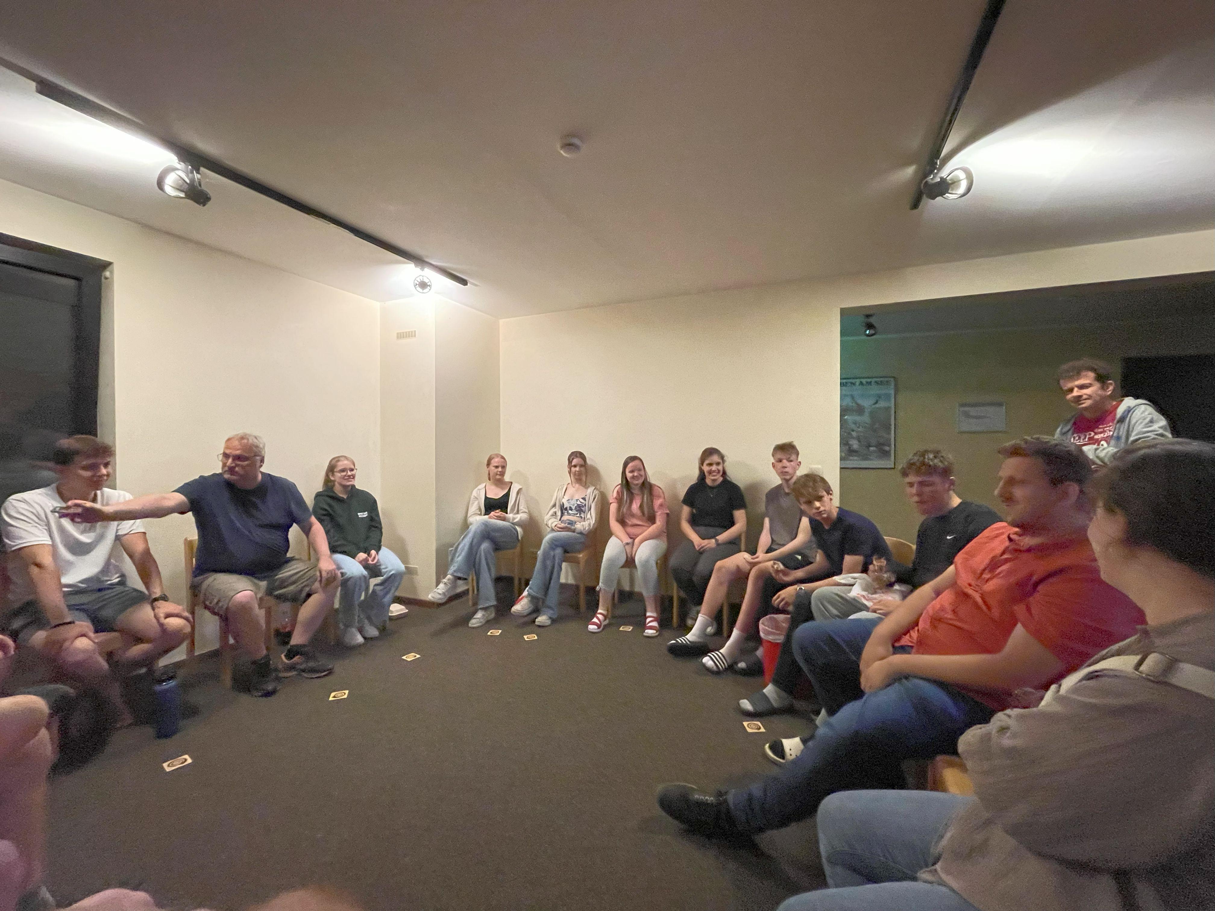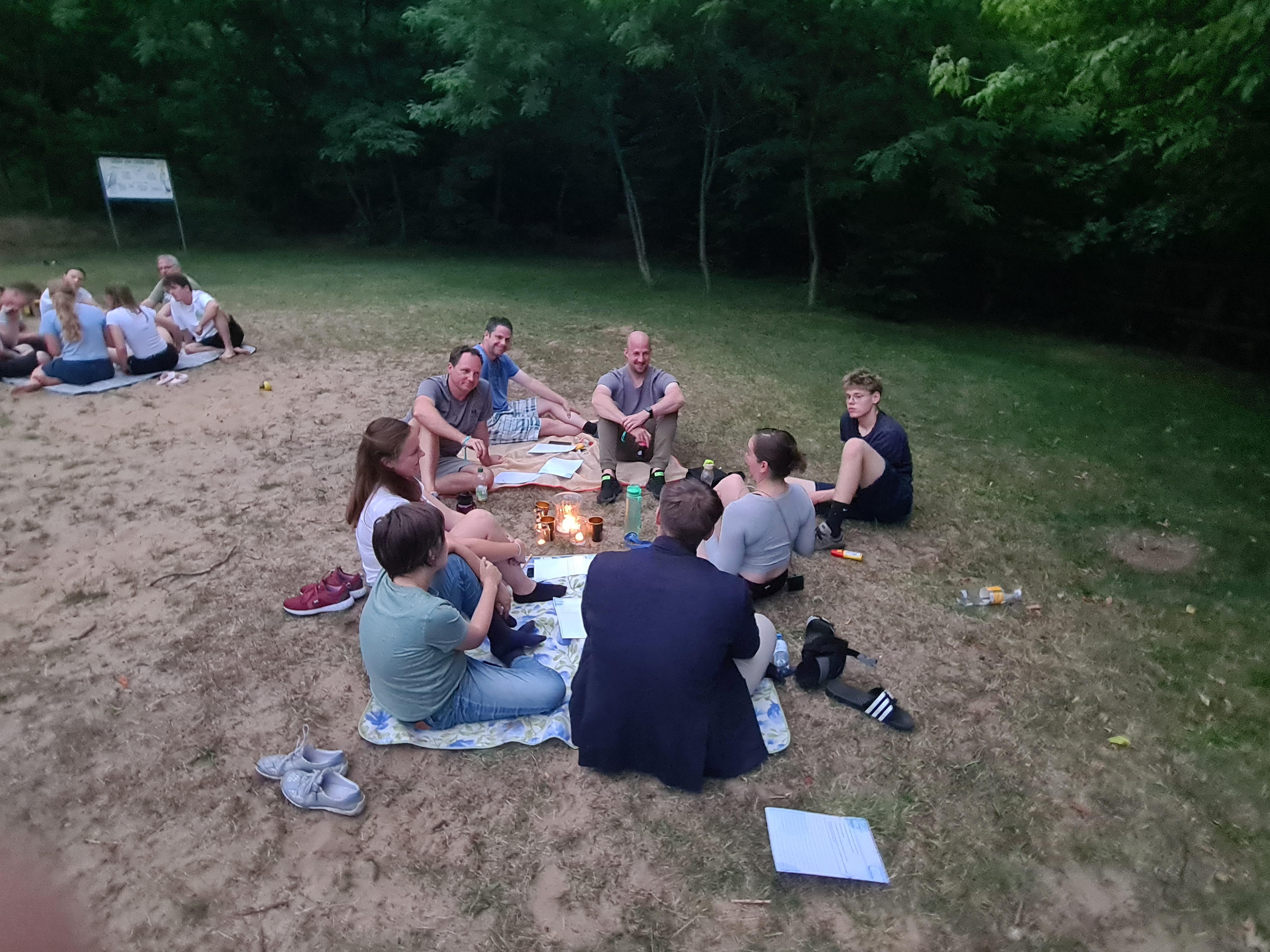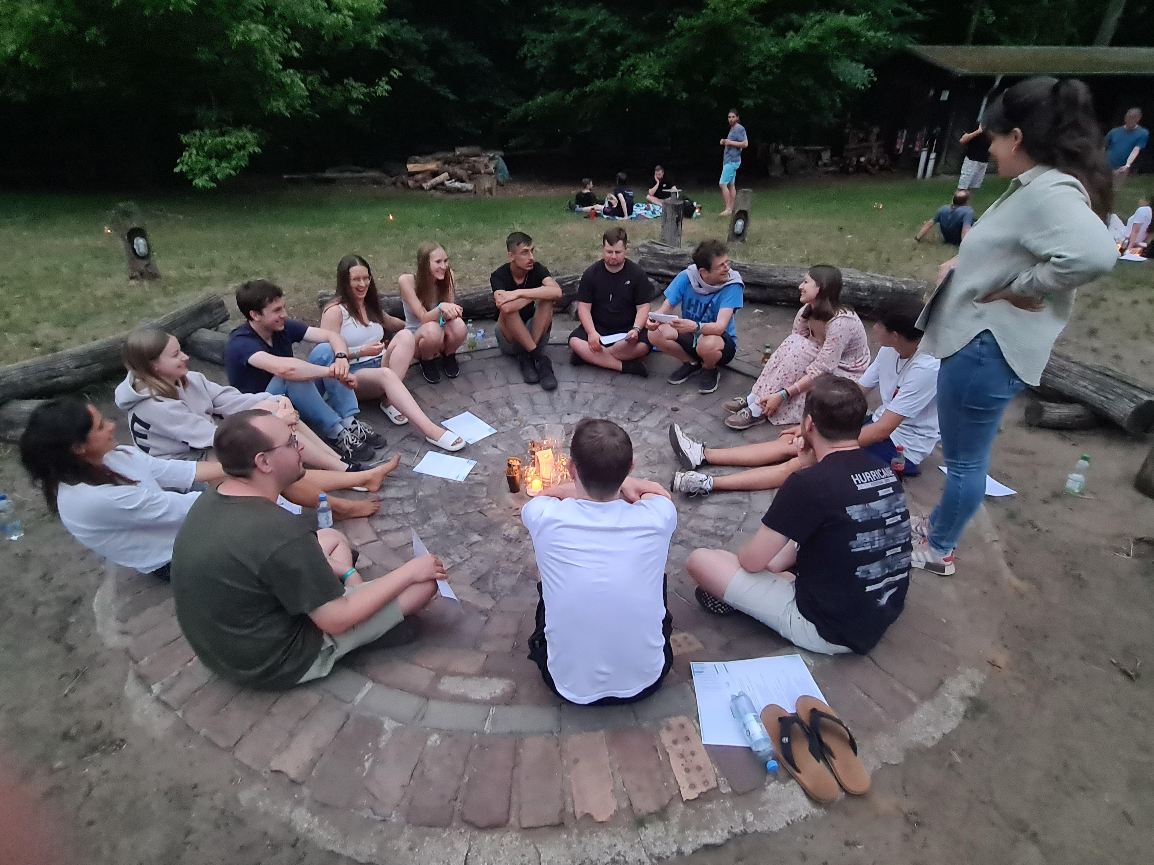 Nach dem Abendbrot waren auf einer Wiese für den Candlelight-Talk kleine Inseln aus Picknickdecken vorbereitet, ausgestattet mit Kerzen und Knabbereien. Über Lautsprecher hörten wir erst den Poetry-Slam „Warum“. In kleinen Gruppen diskutierten die Jugendlichen, warum und wann man sich aktiv für Jesus entscheidet. Man könnte leicht sagen, dass die Konfirmation einen Punkt darstellt, an dem man sich für Jesus entscheidet. Viele können aber erst später erfassen, was das wirklich bedeutet. Denn man entscheidet sich jeden Tag neu für Jesus.